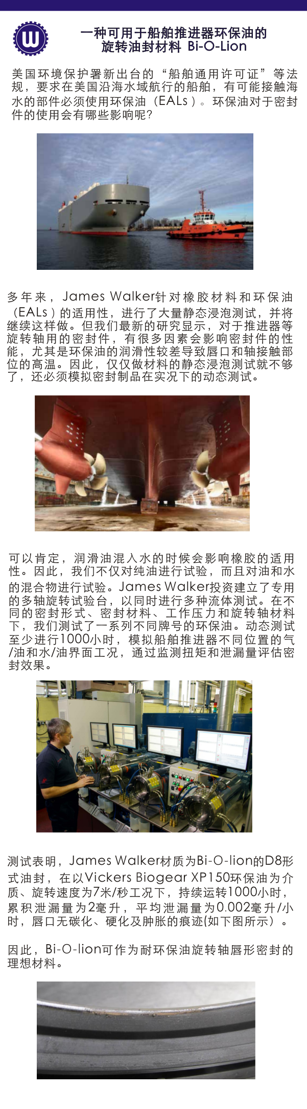 一种可用于船舶推进器环保油的旋转油封材料 Bi-O-Lion